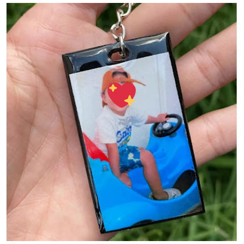 Nosso chaveiro retangular personalizado é feito com resina de alta qualidade, garantindo brilho e durabilidade.
