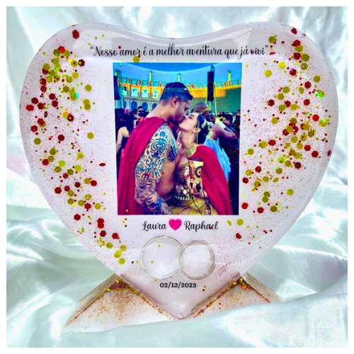 A personalização é conforme o gosto do cliente — cores, nome, informações, fotos e detalhes.