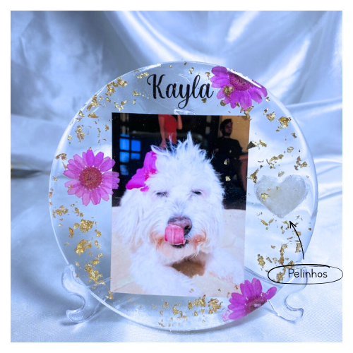 A personalização é conforme o gosto do cliente — cores, nome, informações, fotos e detalhes.